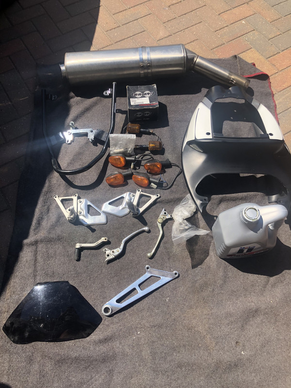 Selling my Aprilia brought to get back into biking but not getting used done 1000miles since brought 2018 Akrapovic exhaust and chip Full Renthall chain and sprocket set dropped 1 tooth on front giving better acceleration and easier to ride around town. New pads front and rear Hel race lines front and rear New rear sprocket carrier bearing New rear sprocket carrier bearings Suspension bearings replaced rear Metzlee racetec RR K3 tyres New petrol filler and pump New clutch slave cylinder upgrade for lighter clutch Short levers and gold rearsets All above done just before I purchased, since owning I have replaced new battery and starter solenoid, have big john cable upgrade( not fitted) oil and filter at last mot (150miles since) Have old exhaust rearsets indicators, levers, grab rail for rear, pillion seat and chrome exhaust hanger, when rear pegs not on,and some oil. 26k miles Mot August 2020 Modded stand Also have new rear end seat unit, as has scuff on one on bike never got round to fitting, Always garaged and on trickle charger Lovely bike but not getting used and just brought dream car promised I would have before 40! £3250 ono |
