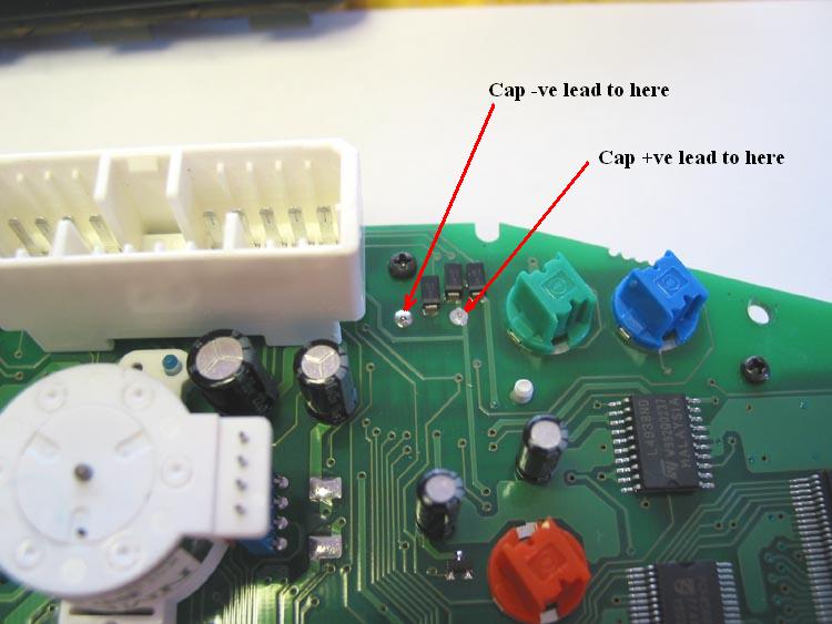 My 2002 with orange clocks still does this. Do you think any harm can be done by fitting the cap? Clocks look identical to your photos. The capacitor is in effect wired parallel so should still work ( or at least do no harm)