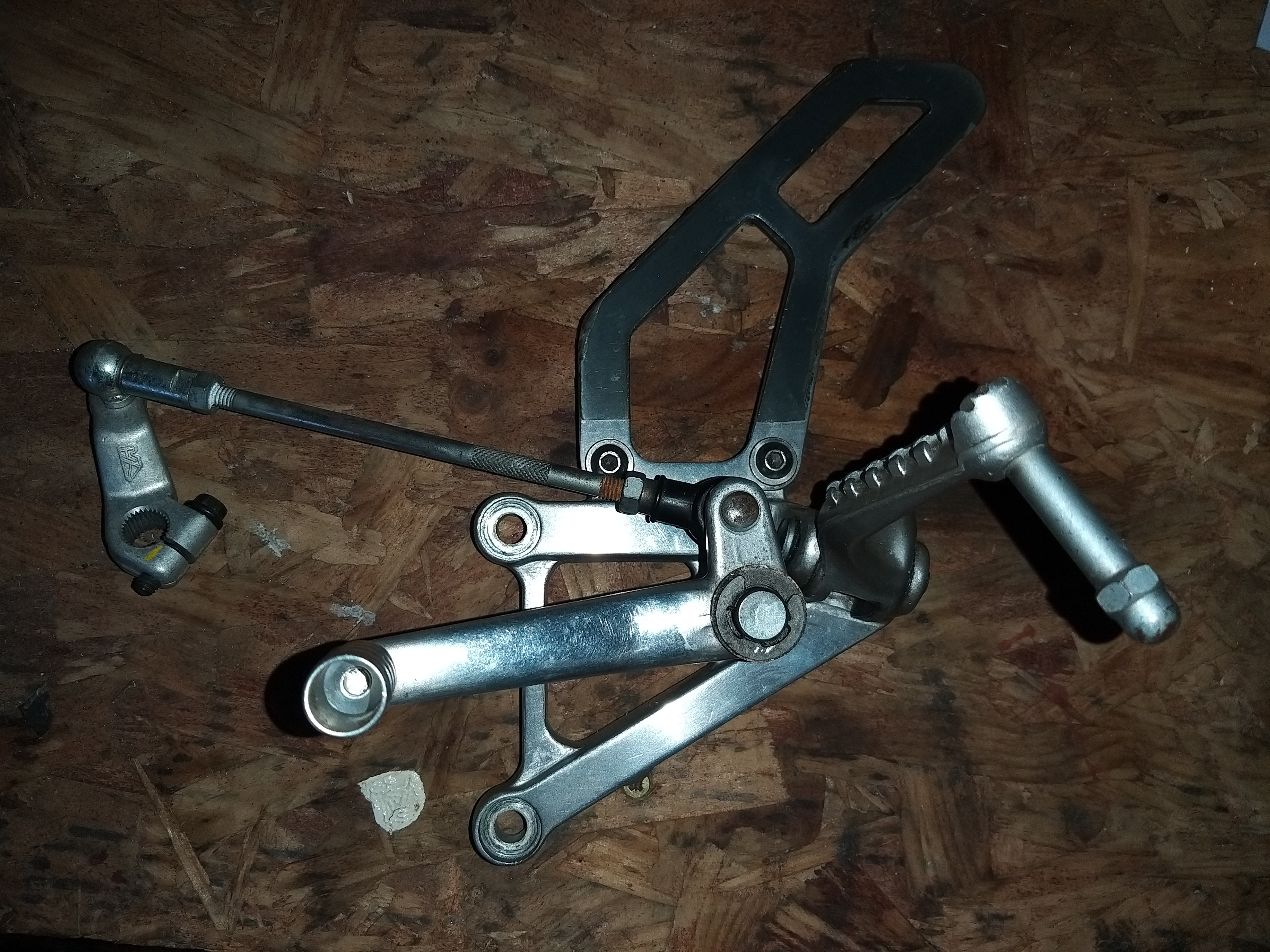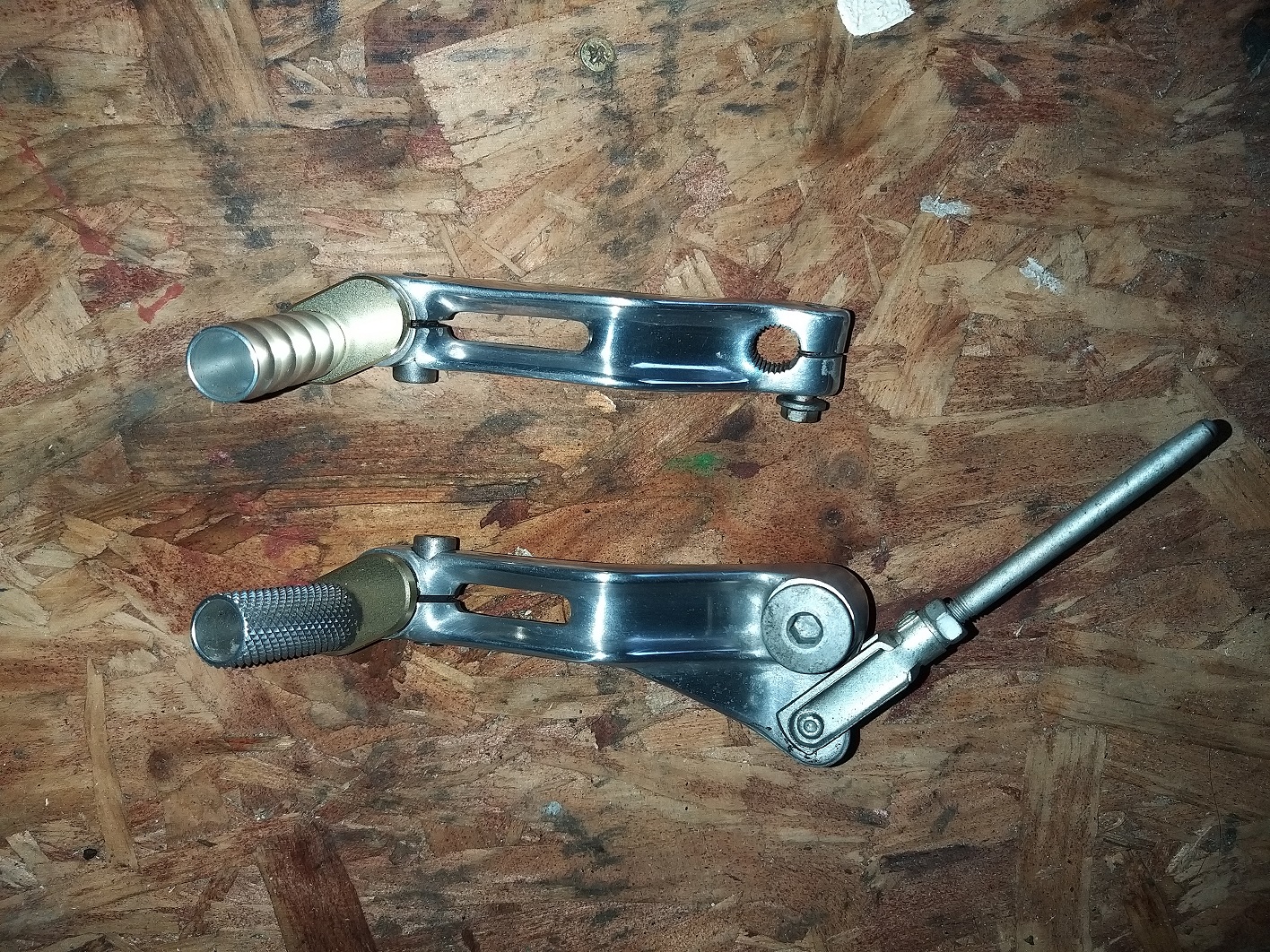 Linkage I made up , its up to you if you want to use Or not ......lol . Also have gear lever and rear brake levers ,these have rotational adjusters From a hp2 bmw fitted and look and function well Dont know how to upload pics but PM me and I'll email pics no problem. £35 for footrests as a pair + p and p And £35 for levers + p and p Both have a polished finish Thanks ![]() |