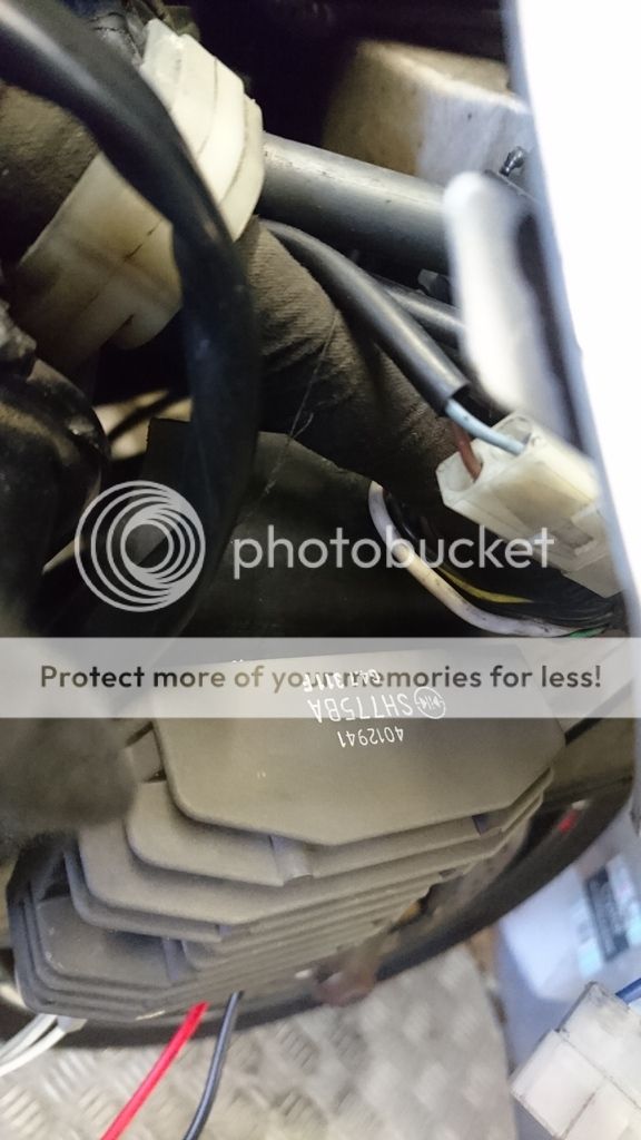 A year or so later, stator goes again, back to west country windings, stator 2, this time has some thin white wire, better spec stuff, fitted to bike, but this time i replace the reg/rec with a new fandango type as stated in a blog on here / triumph net etc - SH775BA. There is no connectors between stator and reg/rec, direct connection.