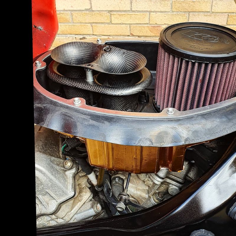 Here's 1 of the mods that I have done. Open air mod with K&N filter, early larger intake boot, lower air box wrapped in funk motorsport heat reflective tape and the carbon fibre double velocity stacks