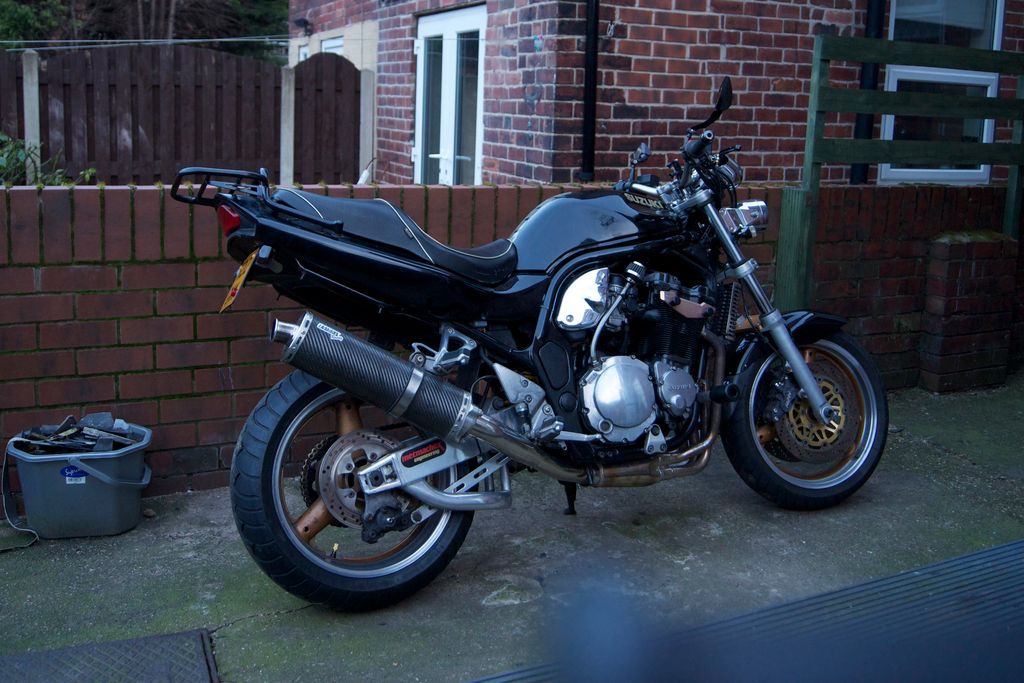 Its got a new chain and sprockets and pads all round, right hand pads rubbing on the disk so needs more investigation. it didnt tick over very well without some choke when i viewed and the guy said he didn't want to spend money sorting that problem it, i had a fiddle today turns out idle screw just needed adjusted, its a pig to reach sitting in the middle of the bank of carbs, some perseverance and that's sorted and its idling well, going to buy a Carbtune vacuum gauge and have a go at balancing the carbs myself. If anyone out there got a set doing nothing get in touch ill buy them. Oh and the right hand side is more salmon pink color, one of the previous owners was a teacher who parked it in the same place at school for 5 years ffs ![]() |