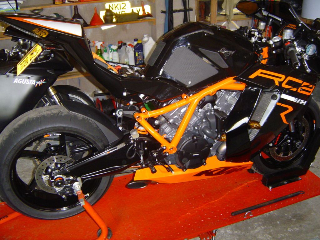 It is good, in fact it is an animal of a thing, not for the faint hearted, lots lighter than the ape and about 30 bhp more with a shed more torque, lots more accommodating regarding the riding position. It is better in many ways than the MV but differently, the MV still oozes quality from every pore. The KTM with the full Akra Evo 4 system on it sounds like world war three has just kicked off, it even scares the sh*t out of me when i start it up |