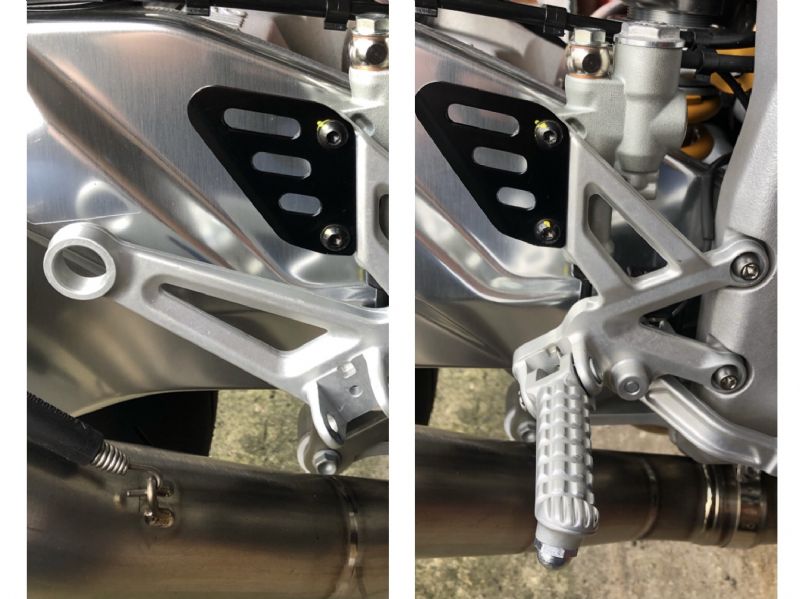 So I got the footrest off a 2019/2020 RSV4 to keep the oem look and remove the lump of metal. I had to change the foot peg with the Tuono one as they are a different design.