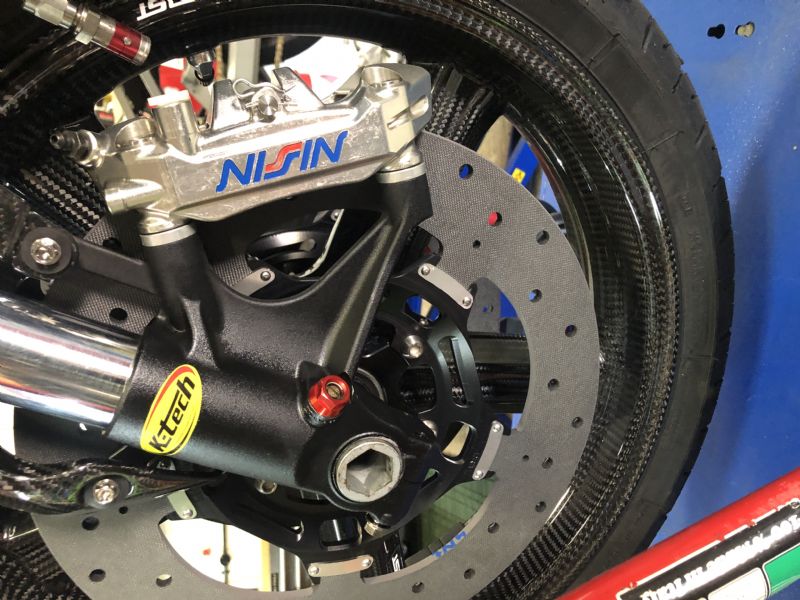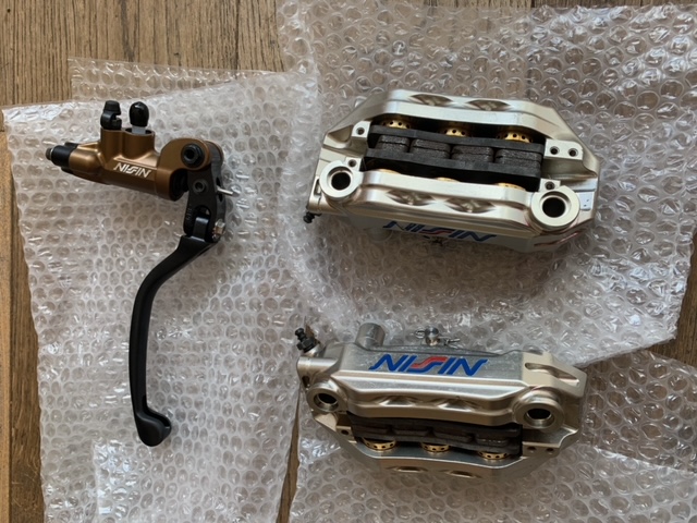 Well I wasn’t able to use the nissin 6 pots on this so they’ve gone on the rsv, the M4’s off of that are now on this and sicom make pads for them and hps stock them, because sicom were messing me around with pads Giles at hps offered to lend me a new set of M4’s with new pads and when I explained I could swap mine off of my rsv and it was pointless him ending up with second hand calipers he really appreciated it and did me a deal in some other parts. This is the sicom’s with M4’s now and I just need to go through the bedding in procedure.
