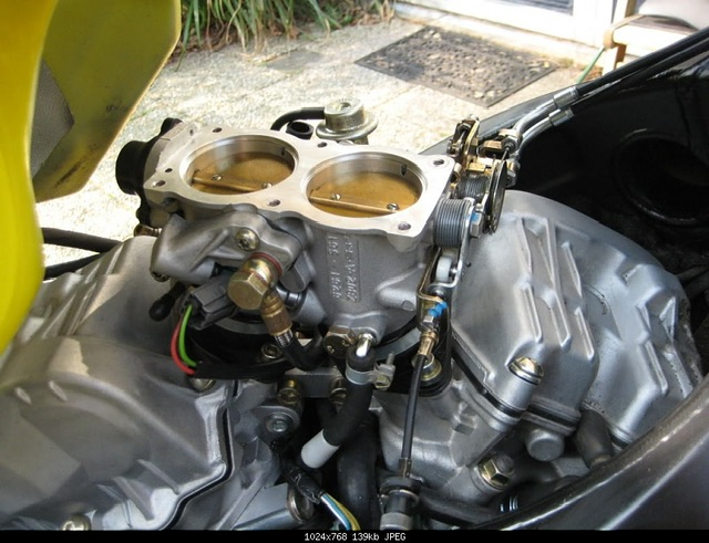 Morning....so, I've accessed the TB's and no movement can been seen at all when moving the FI lever. I've also noticed that the idle adjuster isn't touching anything so no adjustment can be made...I'll see if I can get a picture. Next to the idle adjuster is a blew screw which I won't play.